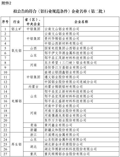 根據(jù)《鋁行業(yè)規(guī)范條件》(工業(yè)和信息化部公告2020年第6號(hào))我部開(kāi)展了規(guī)范企業(yè)公告申報(bào)和動(dòng)態(tài)調(diào)整工作。經(jīng)企業(yè)申報(bào)、省級(jí)工業(yè)和信息化主管部門(mén)核實(shí)(中央企業(yè)自審)、專(zhuān)家組審核及現(xiàn)場(chǎng)核查,現(xiàn)將擬公告的符合規(guī)范條件企業(yè)名單(第二批)予以公示,請(qǐng)社會(huì)各界監(jiān)督。如有異議,請(qǐng)與我們聯(lián)系。
